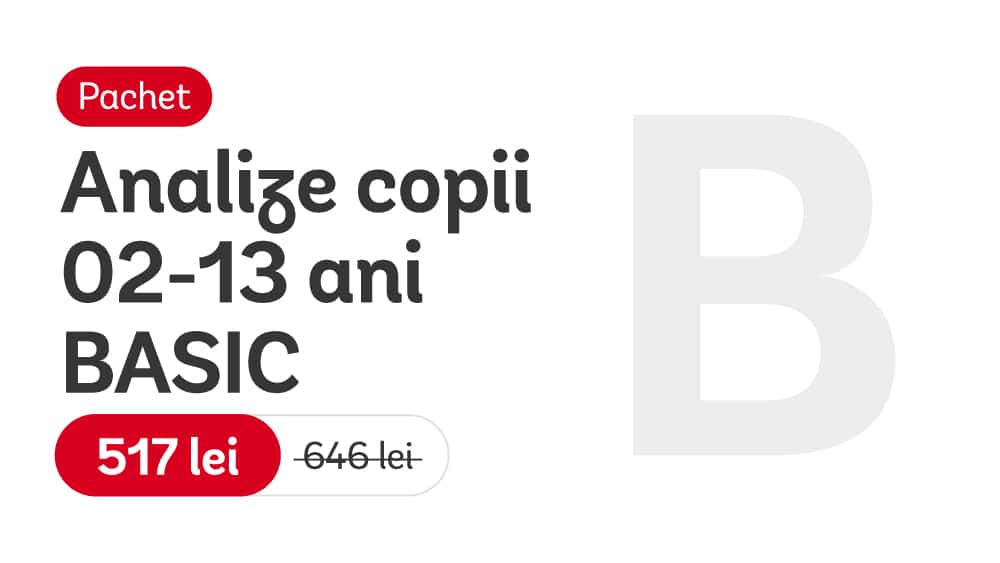 Pachetul de analize pentru copii cu vârsta între 2 și 13 ani este conceput pentru monitorizarea dezvoltării armonioase și a stării generale de sănătate.