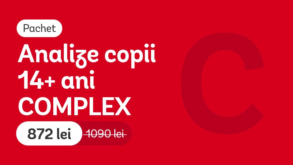 Setul de analize COMPLEX este destinat adolescenților de peste 14 ani și oferă o evaluare amplă a stării de sănătate în perioada de maturizare.